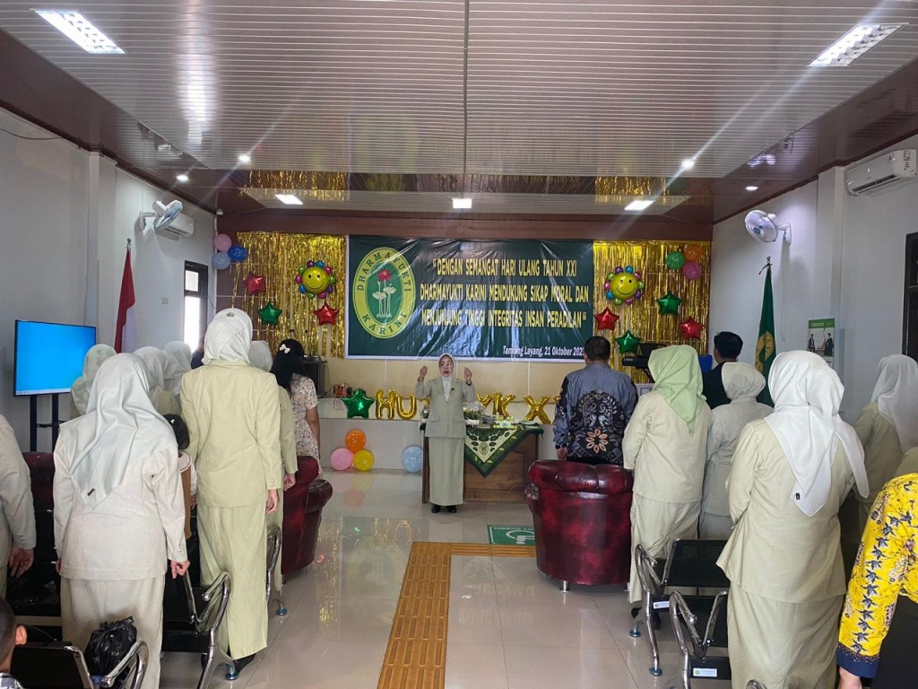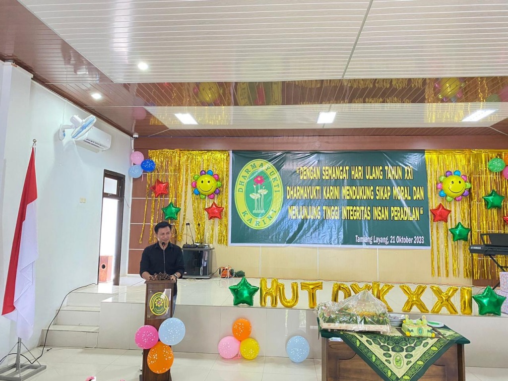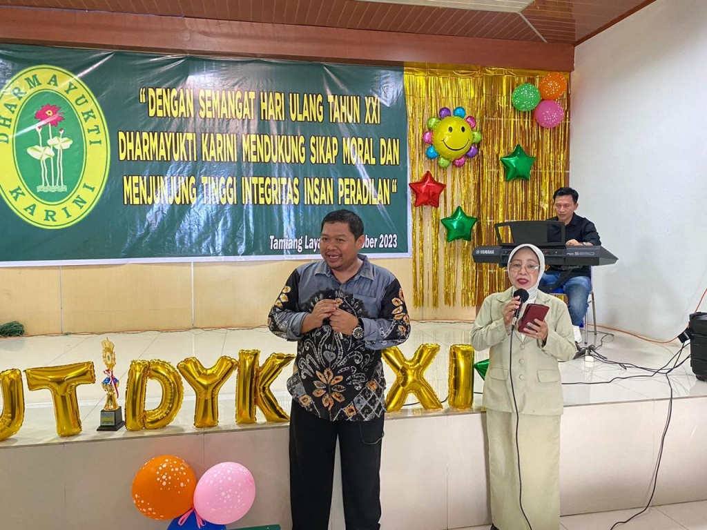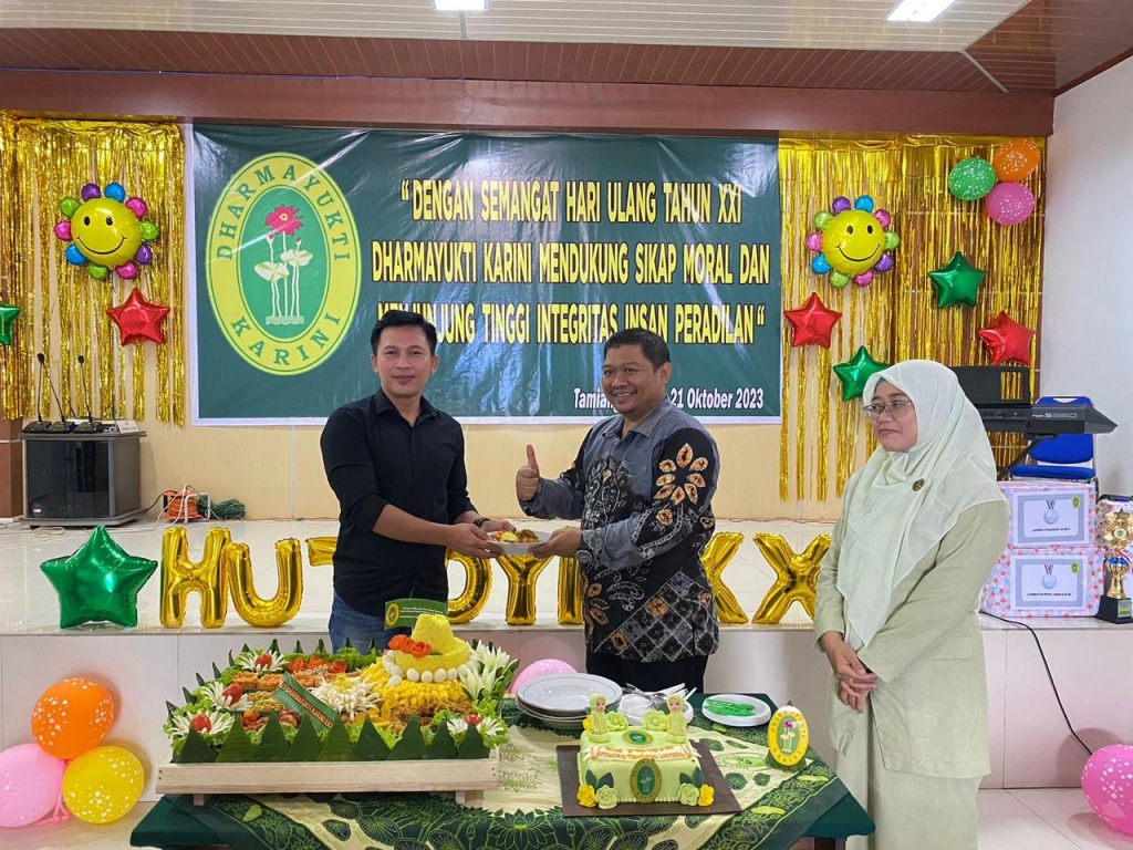 Tamiang Layang, 21 Oktober 2023 di ruang Cakra Pengadilan Negeri Tamiang Layang Ketua Pengadilan Negeri Tamiang Layang Bapak Moch. Isa Nazarudin, S. H., M. H. Selaku pelindung Dharmayukti Karini Cabang Tamiang Layang mengikuti perayaan HUT DYK ke-21 bersama Ketua Pengadilan Agama Tamiang Layang Bapak H. Rofik Samsul Hidayat, S. H., M. H.