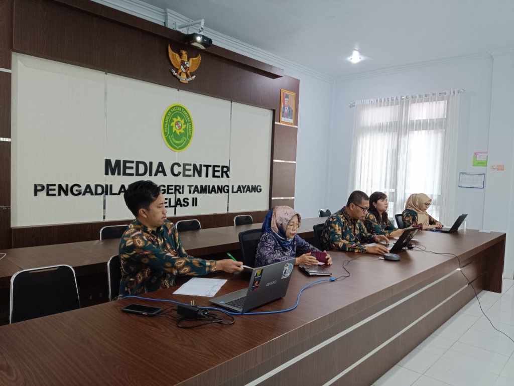 Tamiang Layang, 18 April 2024 diruang Media Center Pengadilan Negeri Tamiang Layang Sekretaris Bapak Citra Adi Asmara, S. E. Bersama Kasubbag Kepegawaian dan Staf bagian Kepegawaian mengikuti diskusi Kepegawaian dengan tema “Analisis Jabatan dan Analisis Beban Kerja” Yang diselenggarakan oleh Pengadilan Tinggi Palangkaraya secara daring.
