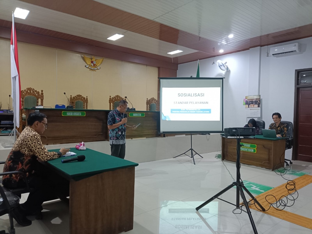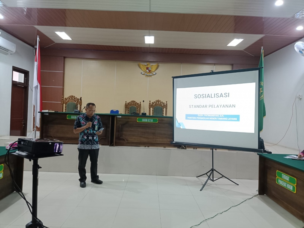 Tamiang Layang, 30 Mei 2024. Diruang Cakra Pengadilan Negeri Tamiang Layang dilaksanakan Sosialisasi Standar Pelayanan oleh Panitera Bapak Patwiansyah, S.H. dan diikuti Wakil Ketua, Hakim-hakim, Sekretaris, Pejabat Struktural/Fungsional, Staf Pelaksana dan PPNPN pada Pengadilan Negeri Tamiang Layang.