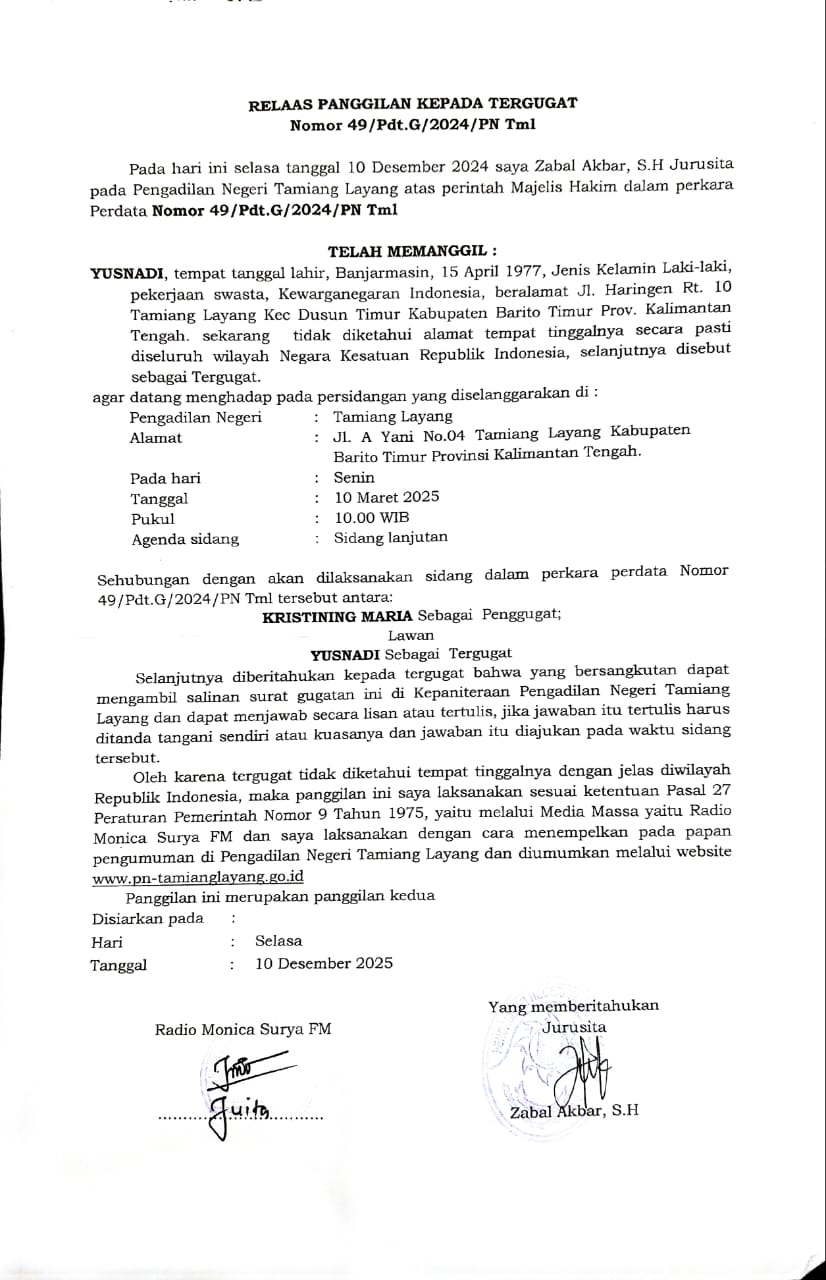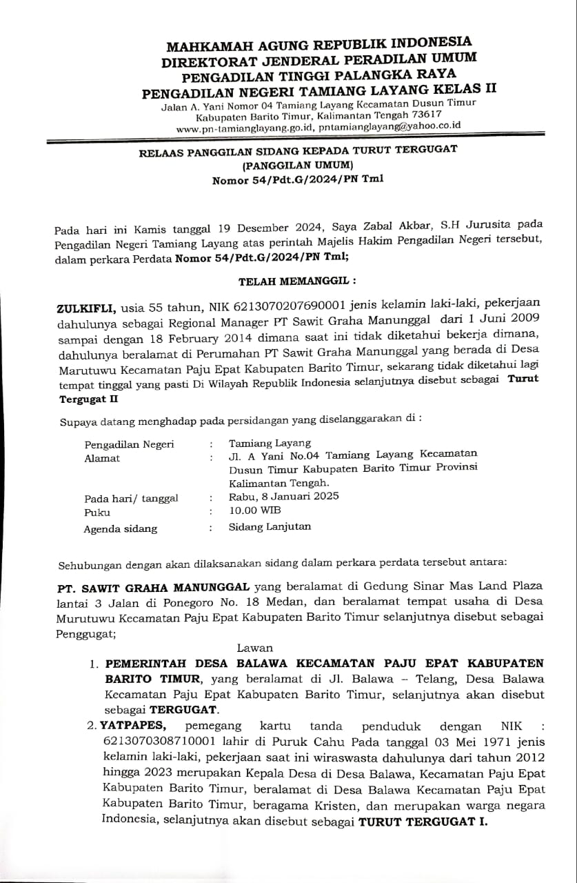 PENGADILAN NEGERI TAMIANG LAYANG KELAS II