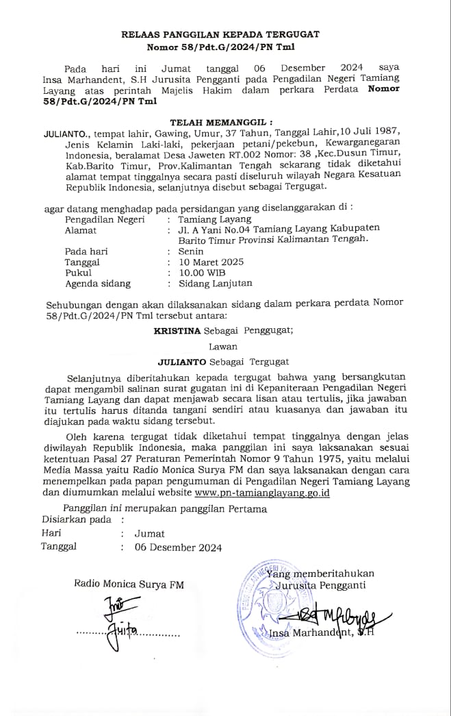 Panggilan Kepada Pihak yang tidak diketahui alamatnya