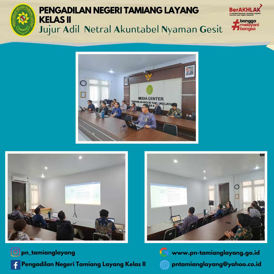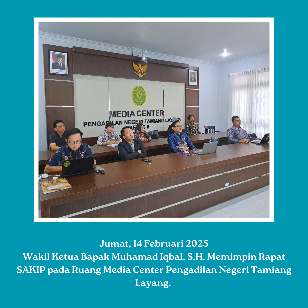 Wakil Ketua Bapak Muhamad Iqbal, S.H. Memimpin Rapat SAKIP (Sistem Akuntabilitas Kinerja Instansi Pemerintah) rapat tersebut diikuti oleh tim SAKIP yang terdiri dari Panitera, Sekretaris, Para Panmud, Para Kassub serta Staff Pelaksana pada Ruang Media Center Pengadilan Negeri Tamiang Layang.