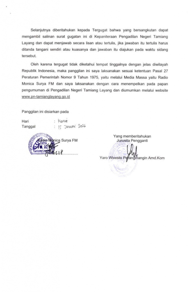 PENGADILAN NEGERI TAMIANG LAYANG KELAS II